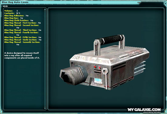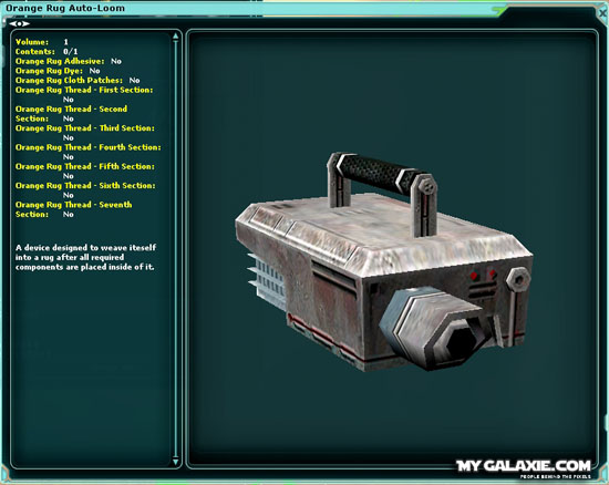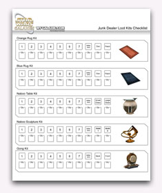 ![]() The Junk Dealer loot kits are pretty simple to make, its getting the parts that's the hard part, We will show you what parts you need and some tips to make this as painless as possible. Before starting you should know if you place a part in a loot kit it can not be removed. We recommend you wait until you have all the parts until you put the kit together. Head to any town and talk to a junk dealer. Choose the option of taking one of the useless kits off his hands (I would do this after you have all parts needed to make a kit.) You will have to loot all of these parts off of NPC's. Just about every gang or bad NPC drops these loots. I have never seen Nomads, Settlers or good NPC's drop any kit parts so don't waste your time You will loot the same parts, We guarantee it so trading can be very helpful in trying to get a finished kit. we have made a great checklist to help you manage what parts you need and have. download it and print it out then just check off the ones you have and tally how many you have in the box below.. Visit your favorite SWG forums and see what parts people have and want to trade for. We have a trading, selling and buying forum you can visit here. You can also buy the parts you need inside the game, the average part is about 100.000 to 200,000 a piece. don't pay higher then this cause its not worth it.Orange Rug Kit you get from the junk dealer.