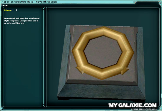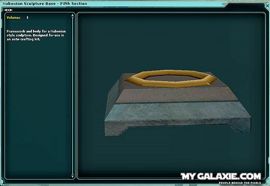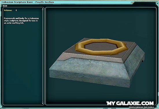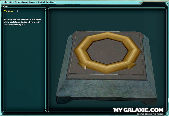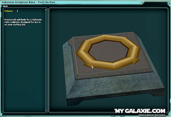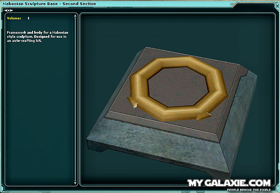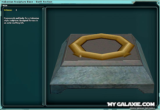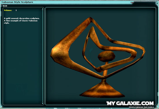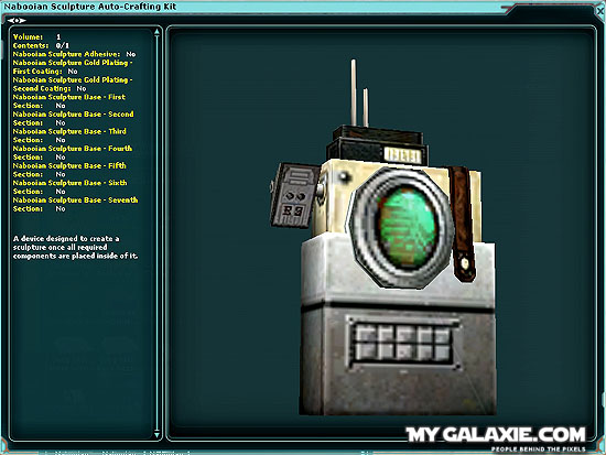 Once you have all the parts just drag them to the Nabooian Sculpture Kit you got from the Junk Dealer and once you have placed all the parts into the kit it will turn into this.